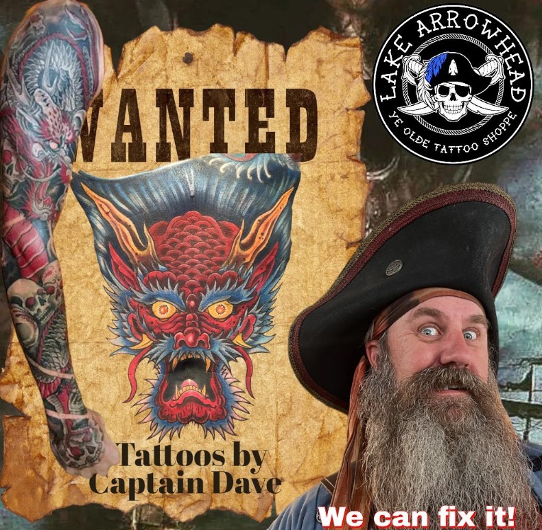 Captain Dave (Cap’n Dave): Shop manager at Lake Arrowhead Tattoo and specialist in pirate-themed tattoos, highly recommended by long-term customers for his artistic vision and pirate designs.